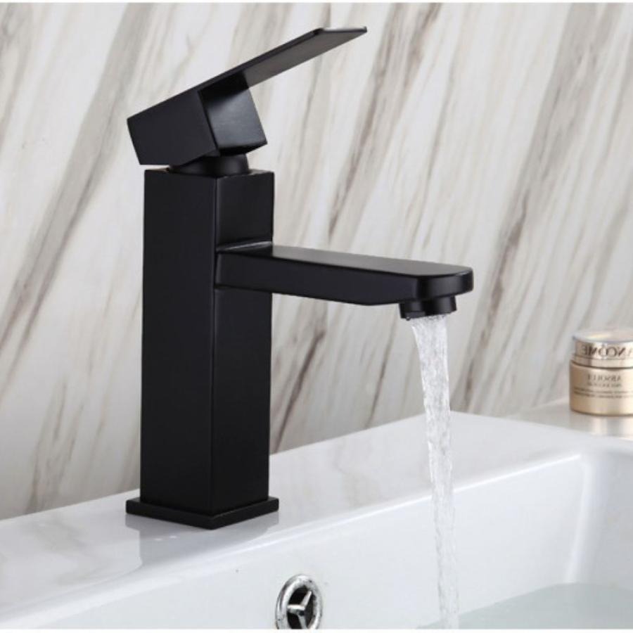 Griferia Monocomando Baja Baño Negro Linea Cuadrada Acabado
